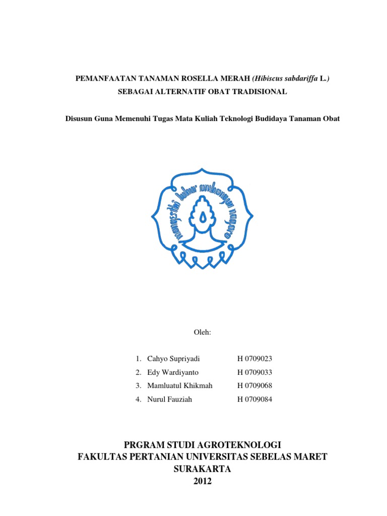 BUDIDAYA TANAMAN OBAT ROSELLA MERAH Hibiscus sabdariffa L DAN PEMANFAATAN SENYAWA METABOLIS SEKUNDERNYA DI PT TEMU KENCONO SEMARANG Puspita Wijayanti1 H 3507015 Ir Sri Nyoto MS 2 dan Umi Barokah SP MP 3 ABSTRAK LEPAS Praktek Magang ini bertujuan untuk mengetahui budidaya tanaman obat rosella merah Hibiscus